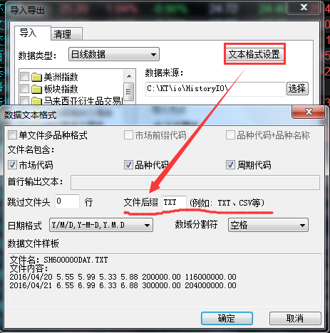 非常感謝您對交易師的支持,系統(tǒng)——數(shù)據(jù)管理——導入導出——文本格式設置(文本格式:txt、csv)。