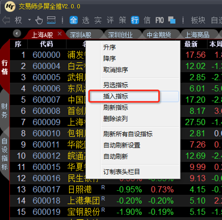 在報價表界面,右鍵點擊表頭,選擇插入指標